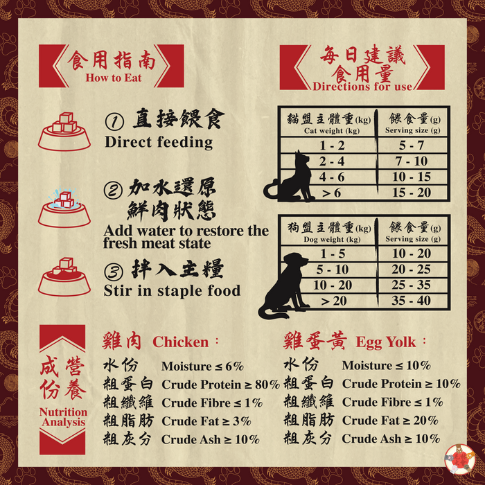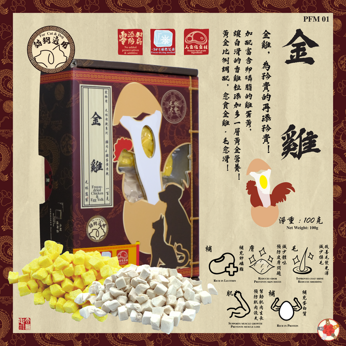 毛林大會 - 金雞 100g #雞肉+雞蛋黃凍乾 #貓狗適用 #無添加 #人食級食材 #寵物主食 #寵物零食 #真空包裝